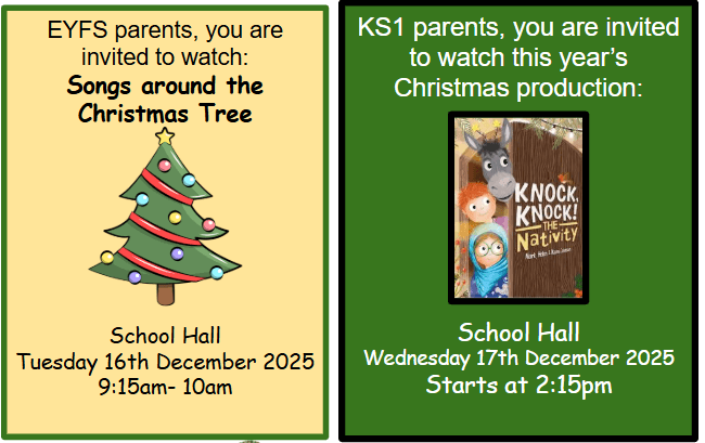 All upcoming whole school events will be shared with parents and carers through letters and posters displayed in school and on the school gate. Communication will also be sent as a link for easy access. Copies of all letters can be found on our school website here.